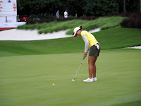 Now here is an interesting observation, since the hole was quite near where the spectators were standing, the photographers were NOT allowed to use their cameras (typically loud noisy DSLR) that could distract the players in concentration. There were guards on duty holding up the large signs reading (no camera no phone) when the player was about to take her shot. Thank goodness for silent shutter! And the Pro Capture Mode was using electronic shutter so I could just fire away without worries. This is one of the important reasons why Mirorrless Cameras are the future.